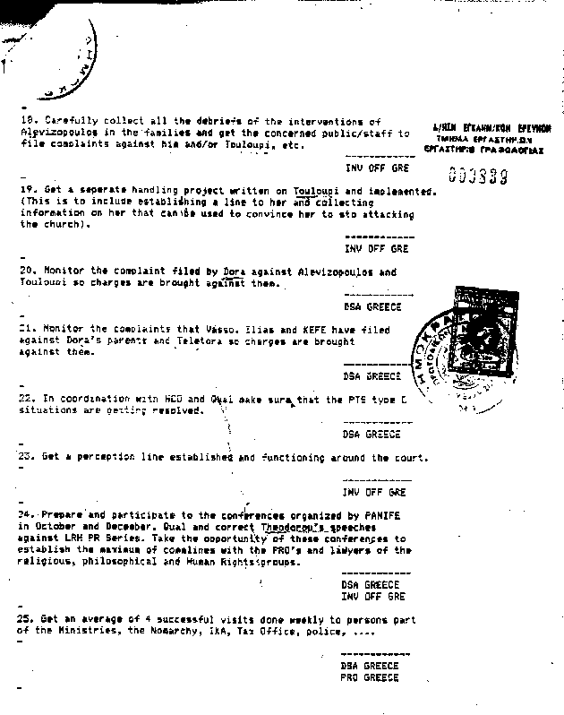 A "perception line" is ........ . It is significant that the person assigned this task is the Investigations Officer Greece, the person in charge of managing covert and overt operations; this Target may be calling for the infiltration of the relevant court in Athens.