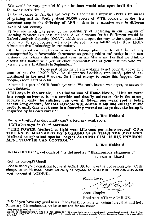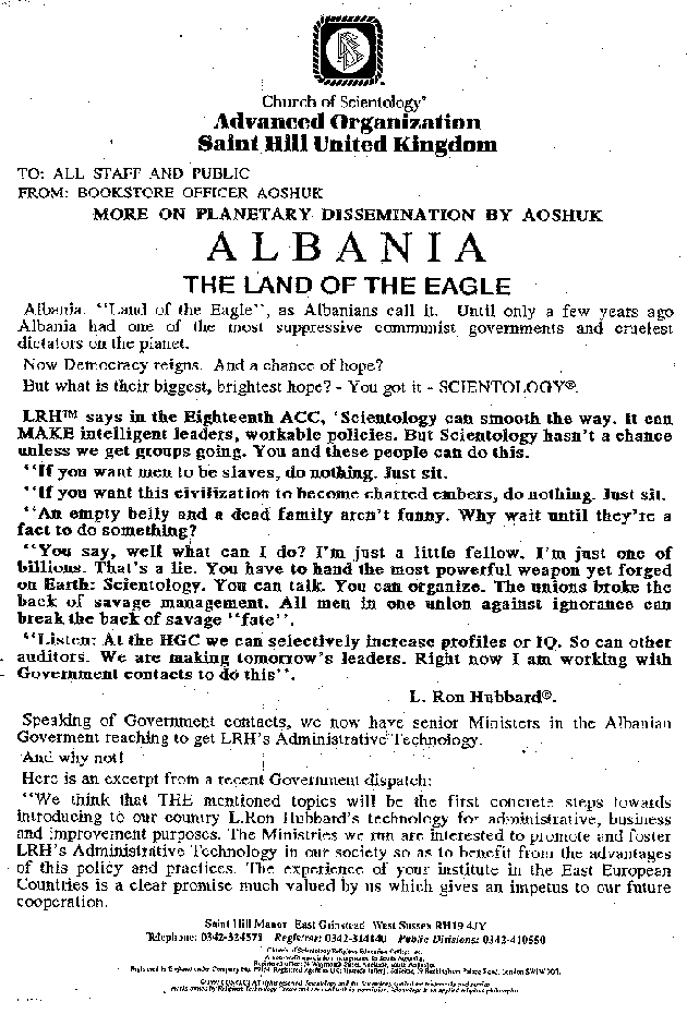 - Scientology plan to invade Albania (1992)