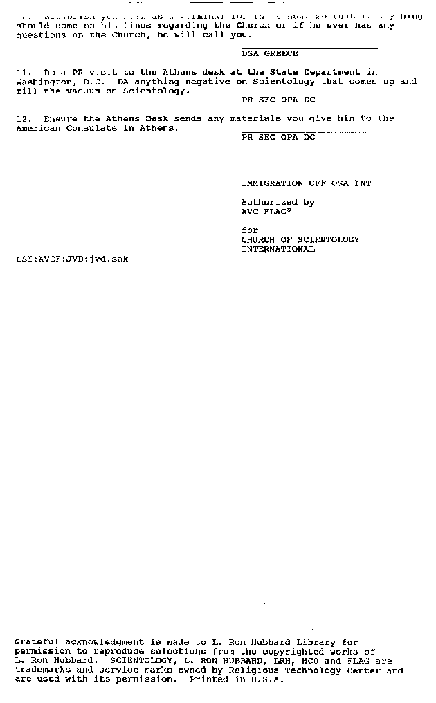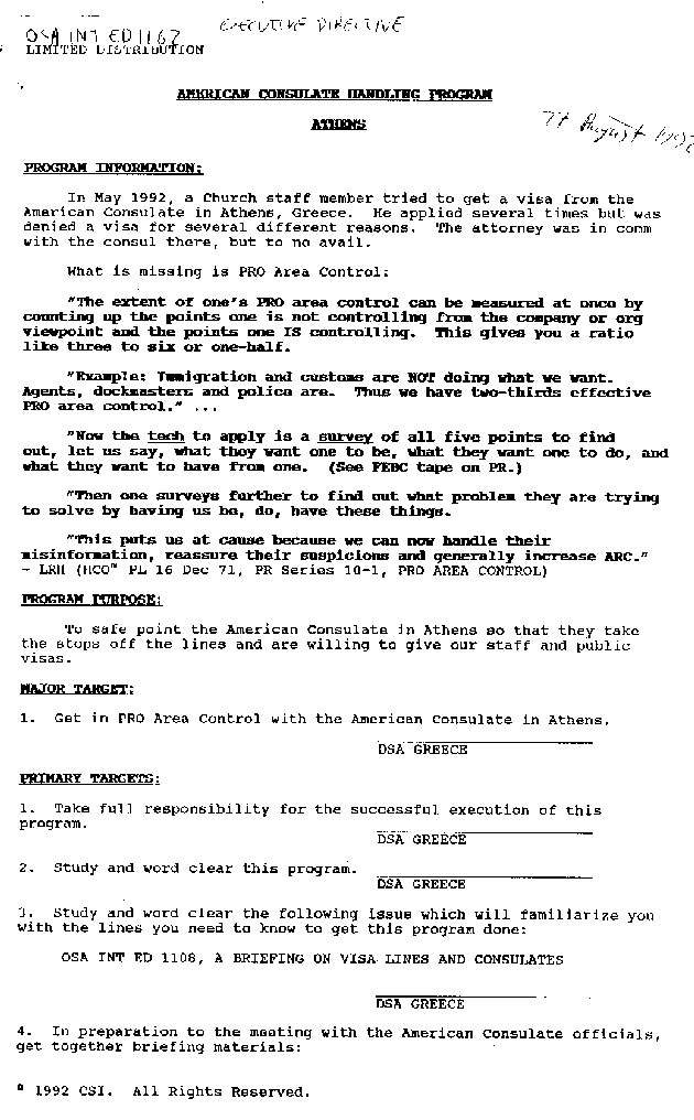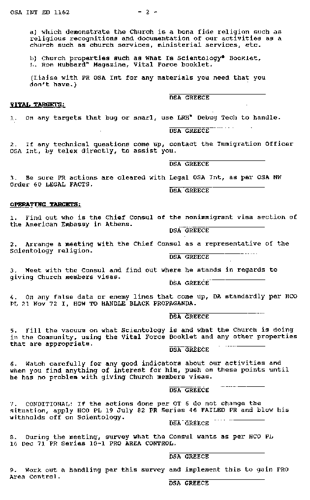 The Scientology's OSA Int. drawn plan to handle the US Consul in Athens and