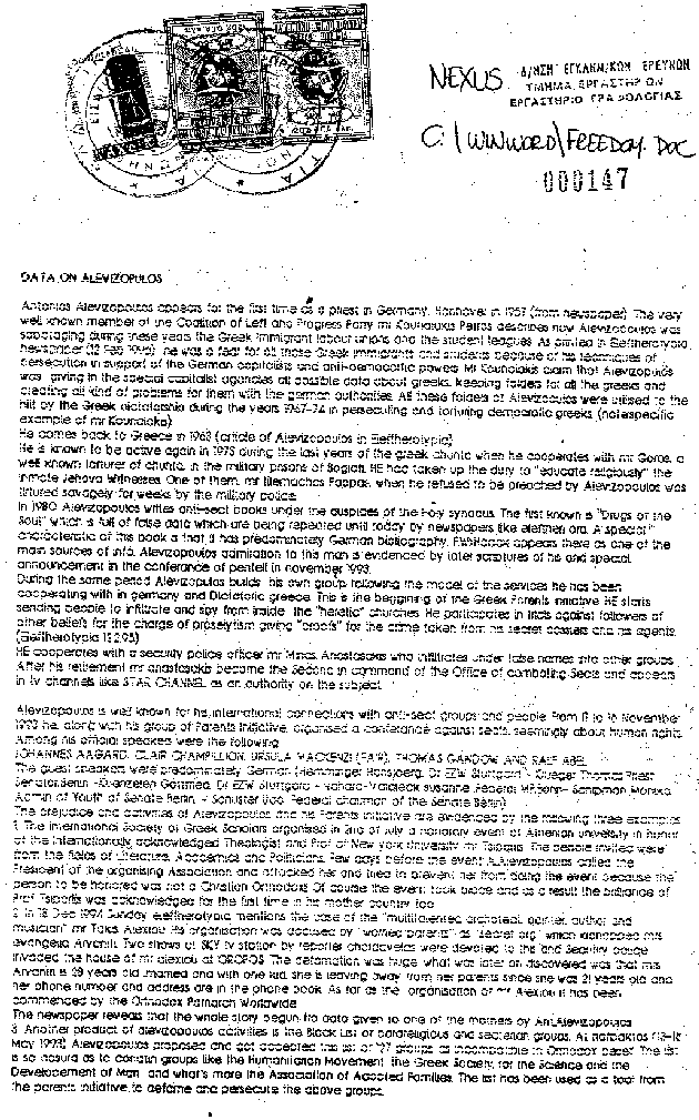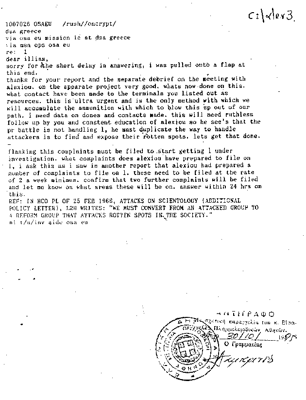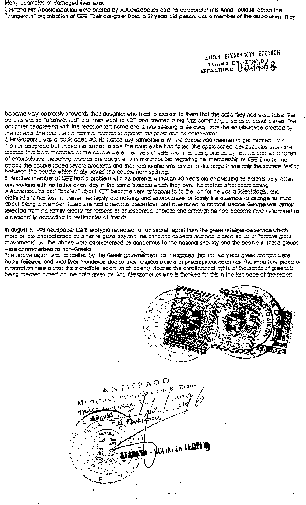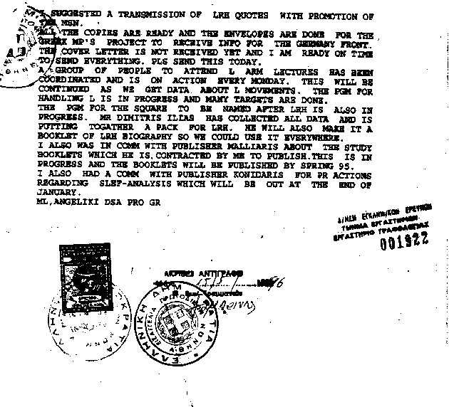 Scientology organization in Greece), with the use of original documents