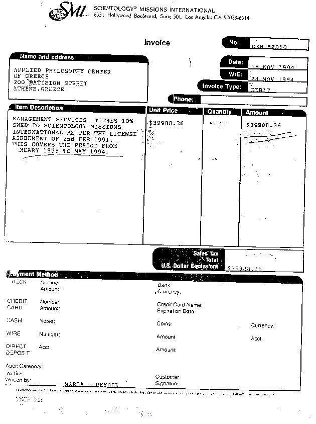 KEFE invoice of $40,000 to Scientology