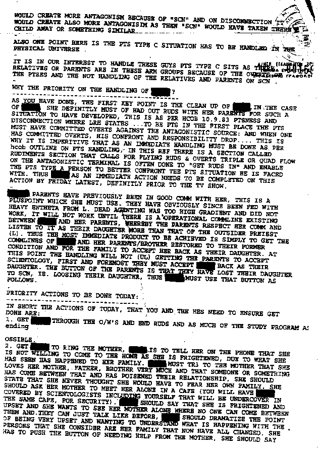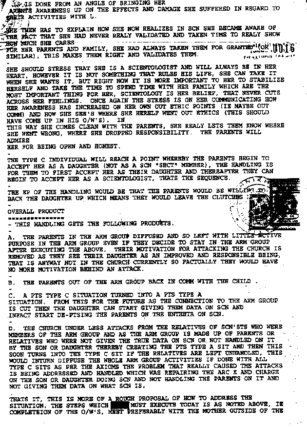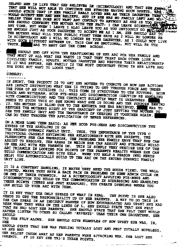 An incredible PTS case of Potential Trouble Source Declaration and Handling, where the total control of Scientology to the