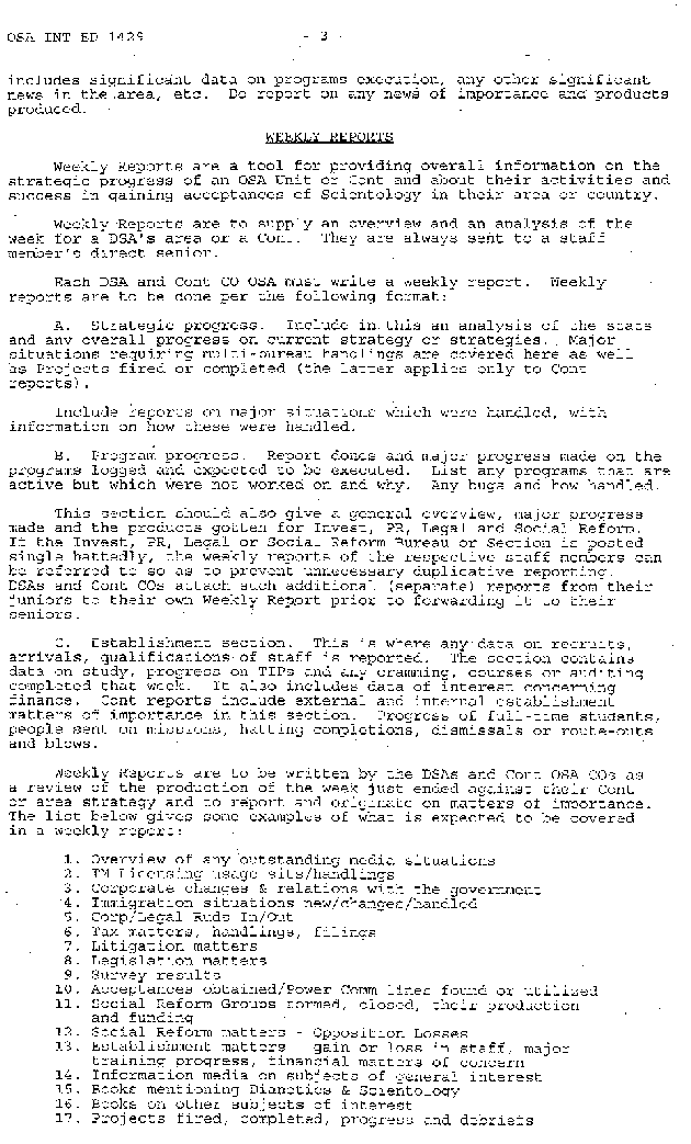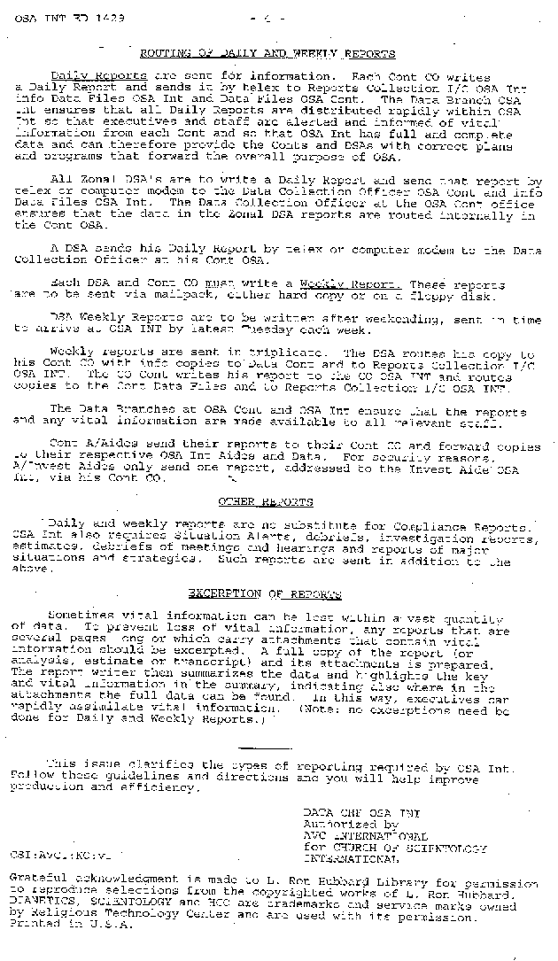 - DSA & OSA Reports Policy from Scientology Missions to