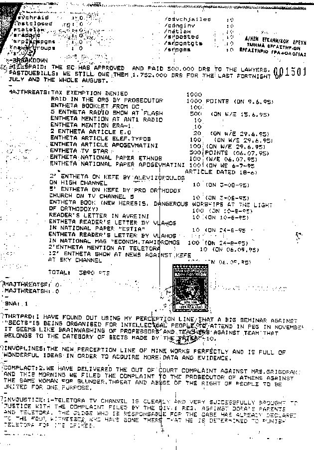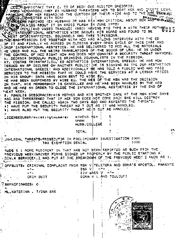 Documents seized from The Church of Scientology in Greece when